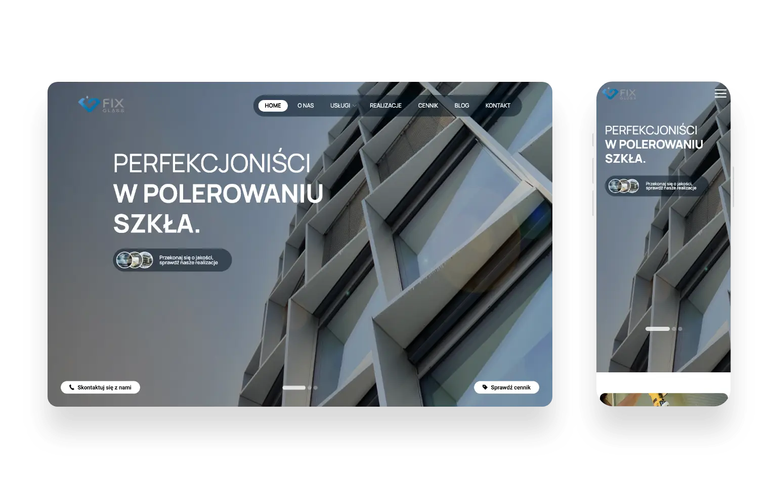 Po zaakceptowaniu makiety przez Fix Glass przystąpiliśmy do pracy nad pełnym projektem graficznym, dostosowując kolorystykę, zdjęcia oraz układ strony do charakteru działalności klienta. Strona została następnie zakodowana i wyposażona w nowoczesne funkcje, takie jak responsywność, szybkie ładowanie oraz intuicyjny panel administracyjny. Dzięki temu zespół Fix Glass może samodzielnie aktualizować treści na stronie i zarządzać ofertą bez potrzeby korzystania z dodatkowego wsparcia technicznego.