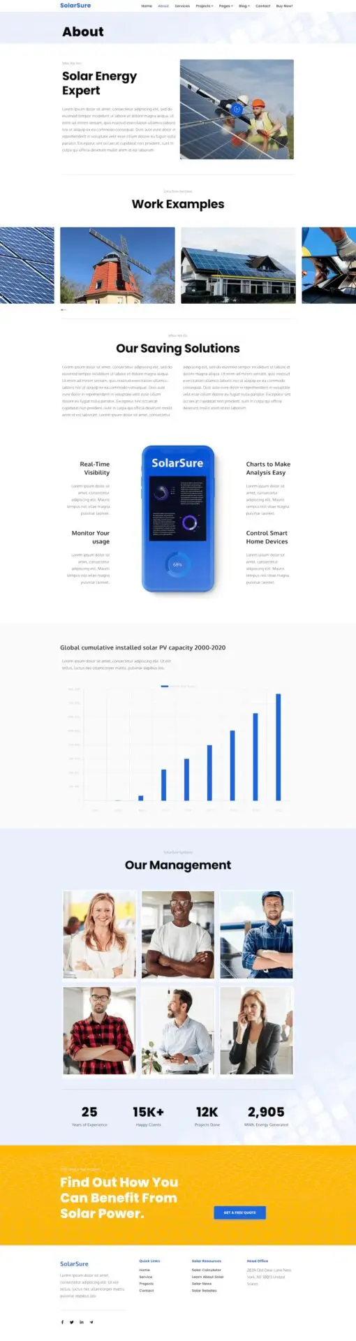 Szablon Solar Sure to doskonałe rozwiązanie dla firm z branży energii odnawialnej, które chcą w profesjonalny sposób przedstawić swoje usługi, zespół oraz misję. Zaprojektowany z myślą o nowoczesnym i eleganckim wyglądzie, jest w pełni responsywny, co oznacza, że świetnie wygląda zarówno na komputerach, jak i na tabletach oraz telefonach.